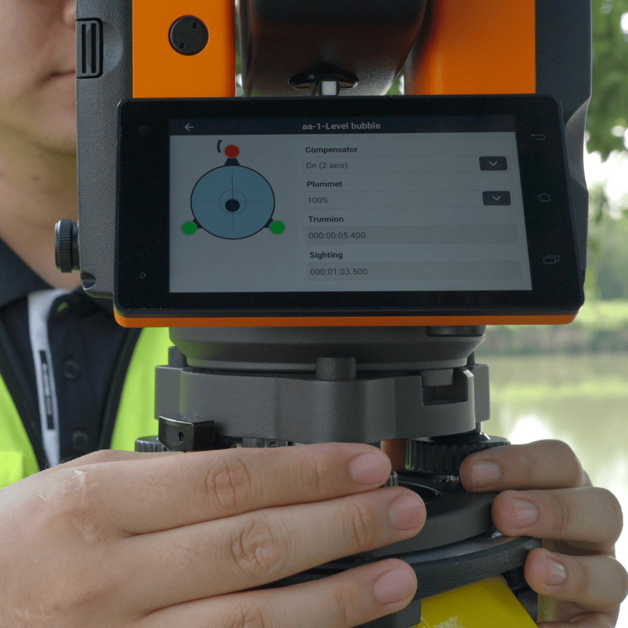 Το CTS-A100 περιλαμβάνει ηλεκτρονικό αντισταθμιστή δύο αξόνων για βελτιωμένη σταθερότητα μέτρησης, εξασφαλίζοντας ακριβή αποτελέσματα σε ανώμαλα εδάφη. Η ψηφιακή ηλεκτρονική αεροστάθμη καθιστά την οριζοντίωση γρήγορη και εύκολη, απλοποιώντας περαιτέρω τη διαδικασία εγκατάστασης του οργάνου.